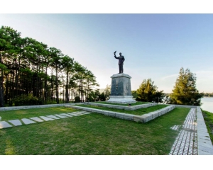 中正公園入口位於太湖南側(cè),園區(qū)包括太湖及榕園,占地面積廣達(dá)50公頃;大門(mén)有一壯觀牌樓,牌樓中間靠著太湖湖畔,豎立著蔣公的銅像,左手拿著手杖,右手拿著軍帽揮動(dòng),流露出慈祥的笑容。