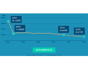 兩岸自1987年恢復民間往來后,兩岸通婚數量逐漸增加,至2003年達到高峰,內政部統計,當年兩岸結婚對數達3萬4109對,占該年全臺總結婚數近2成。但2004年卻驟跌到1萬1886對,大減2萬多對。陸「海峽兩岸婚姻家庭服務中心」負責人認為,兩岸通婚數量減少,是兩岸社會經濟水準差距縮小、兩岸婚姻逐漸恢復理性的表現。
