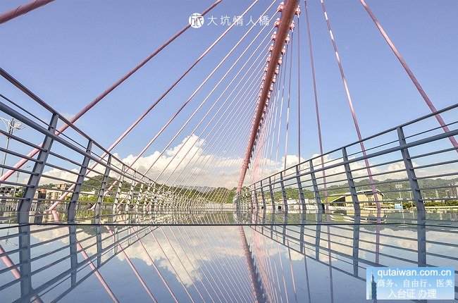 大坑情人橋可說是2016年最夯的一座橋,橋身漆著Pantone年度代表色─Rose Quartz玫瑰石英粉,搭上藍(lán)天白云的好天氣,就像是另一個年度代表色─ Serenity寧靜粉藍(lán),更因為獨(dú)特的造型在倒影之下隱約藏了愛心,命名為情人橋。
