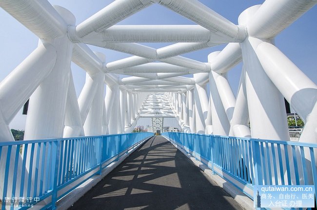 古典而優(yōu)雅的藍(lán)天白云橋,順著廍子溪排在第三順位,行駛在橋面之上就像是行經(jīng)倫敦大橋一般,橋身漆著藍(lán)天的藍(lán)、白云的白,宛如被陽光照射而縮小的晴天版?zhèn)惗卮髽颉?/p>